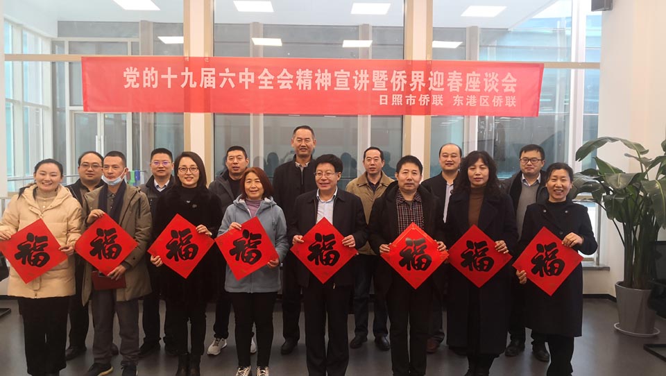1月14日上午,日照市侨联、东港区侨联联合举办“党的十九届六中全会精神宣讲暨侨界代表人士迎春座谈会”,新侨创新创业日照联盟、海外侨领、归国留学人员、归侨侨眷代表人士,区留学生亲属联谊会、有关侨胞之家和市区侨联相关科室负责人等欢聚一堂,喜迎新春,共话友谊,共谋发展。市侨联党组成员、副主席李宜军出席活动并做宣讲,东港区侨联主席秦培正主持。