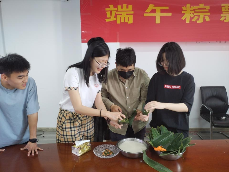经过一个小时的辛勤劳作,100余个有棱有角、精神饱满的粽子出现在大家眼前,活动现场洋溢着浓浓的节日气氛。