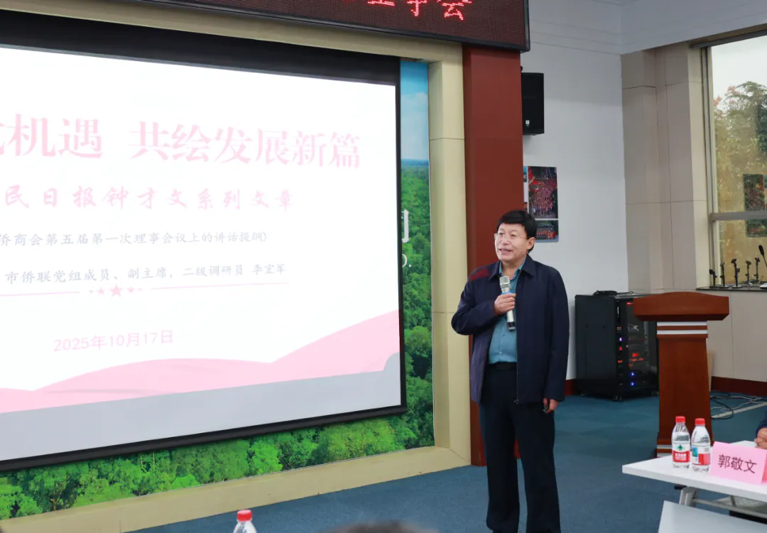 李宜军以《把握时代机遇,共绘发展新篇——简析人民日报钟才文系列文章》为题作了精彩的主题演讲。他紧密结合当前宏观经济发展形势,以人民日报钟才文系列文章的深邃内涵为基础,结合国家发展的战略方向与政策导向,与侨商群体探讨分享未来的广阔发展机遇。李宜军鼓励广大侨商要坚定发展信心,主动融入国家和地方发展大局,在新时代的浪潮中找准定位,乘势而上,不断提升企业核心竞争力,实现自身更大发展,为日照经济社会高质量发展贡献更多侨界力量。